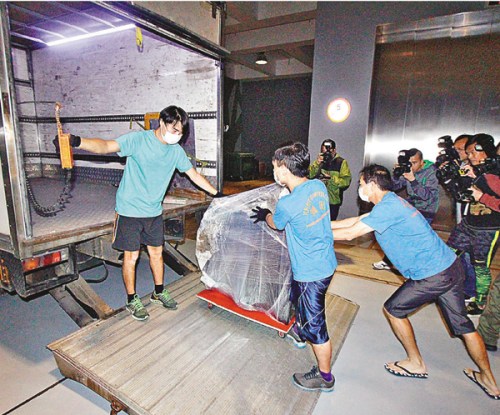 圖為2016年藏屍石棺被運返警署作證物存放