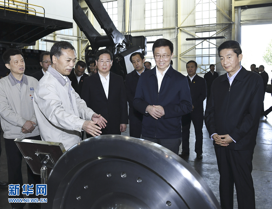太原重型機械集團有限責任公司是新中國自行設計建設的第一座重型機械廠。韓正來到這裏,考察礦山挖掘機、高鐵輪對等先進機械研發生產情況。韓正強調,重型機械是國之重器,是先進製造業的重要支撐,要加快產品智能化步伐,提高生產線和生產設備的國產化率,實現精密零部件加工的技術突破,積極拓展“一帶一路”沿線國家市場,加強人才隊伍建設,打造具有國際競爭力的高端裝備製造產業。韓正走進生產車間,勉勵一線工人抓住轉型升級機遇,推動企業加快發展,實現個人價值。