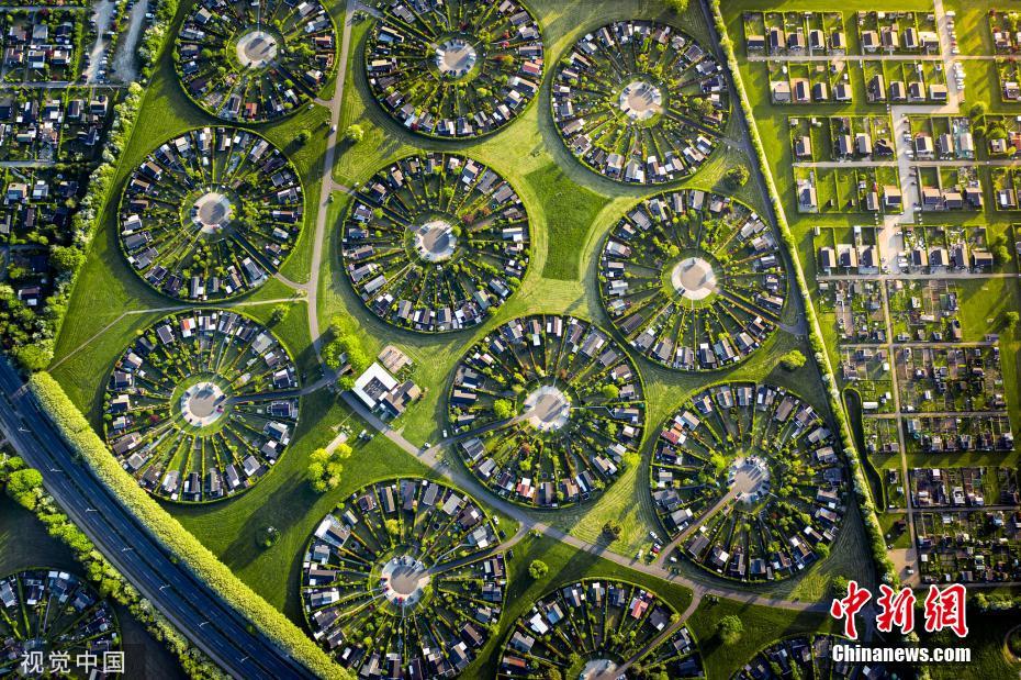 近日,一組丹麥哥本哈根郊區布羅德比的航拍圖走紅社交網絡。據悉,布羅德比的社區由284棟房屋和分配花園組成,居民可以在此遠離鄰近城市的混亂。它由已故的建築師Erik Mygind於1964年開發,設計師認為這樣的城市規劃將有助於增加居民之間的社會互動。圖片來源:視覺中國