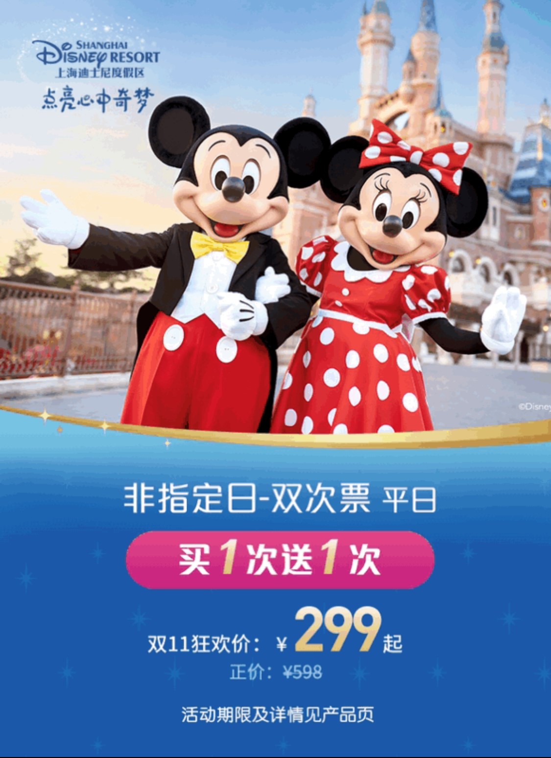 就怕你搶不到!天貓雙11當天上海迪士尼套票限時約6折