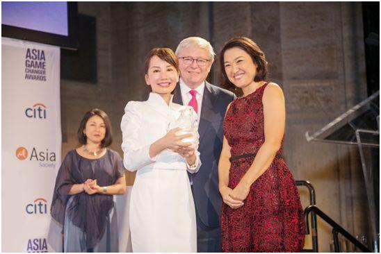 澳大利亞前總理陸克文和SOHO中國CEO張欣給孫潔頒獎