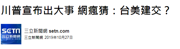 然而,諷刺的是,“三立新聞網”其實在他們的報道中已經寫了,目前各大外媒皆認定,特朗普的推文可能與傳出的巴格達迪的死亡消息有關。然而,其標題和文章仍然把“台美關係”關係當噱頭,還想象“台灣主權”“台美建交”。