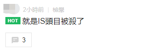 其中,《聯合報》“新頭殼”等台媒報道引述網友推測稱,聲明可能與美國近日突襲恐怖組織IS的行動有關。