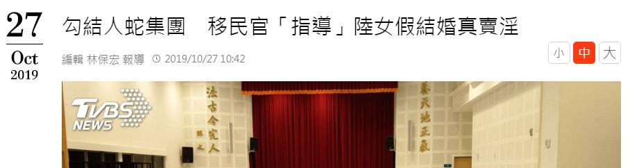 綜合台灣“TVBS”等媒體10月27日報道,陳姓專員任職於台“移民署”中區事務大隊,其日前被查出利用職務之便與非法移民集團勾結,往返兩岸教導大陸女子以“假結婚”名義來台,以利其事實上從事賣淫行為。