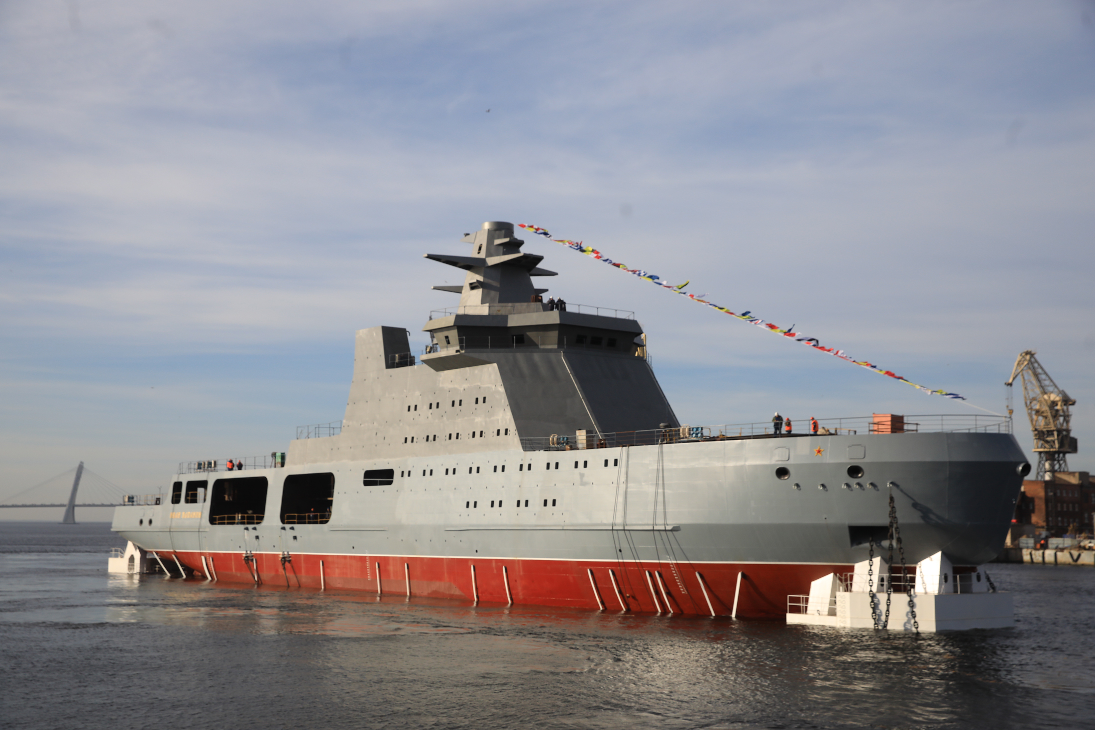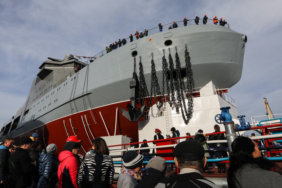 俄海軍“破冰巡邏艦”下水 裝備口徑導彈護航北極航線