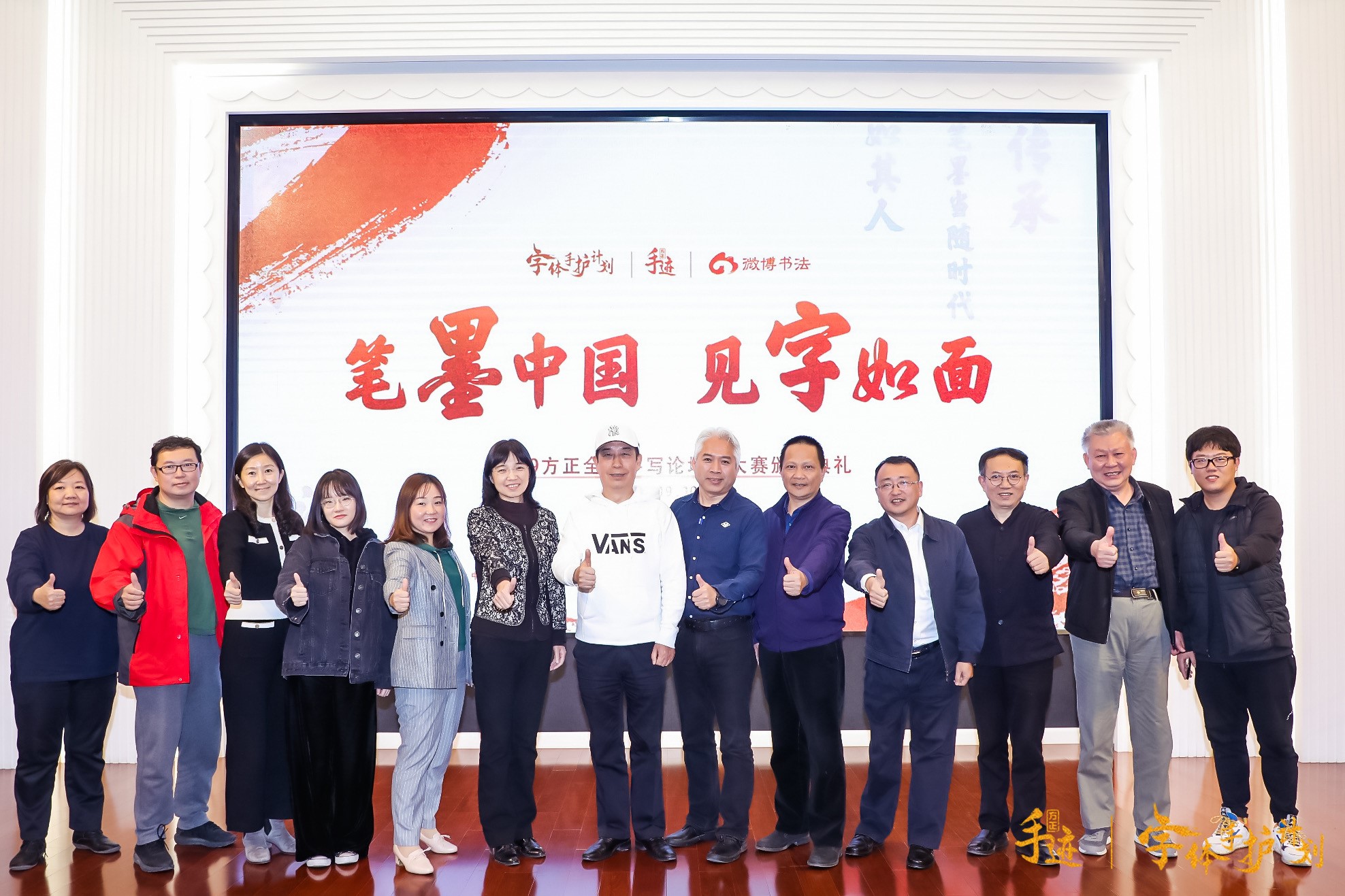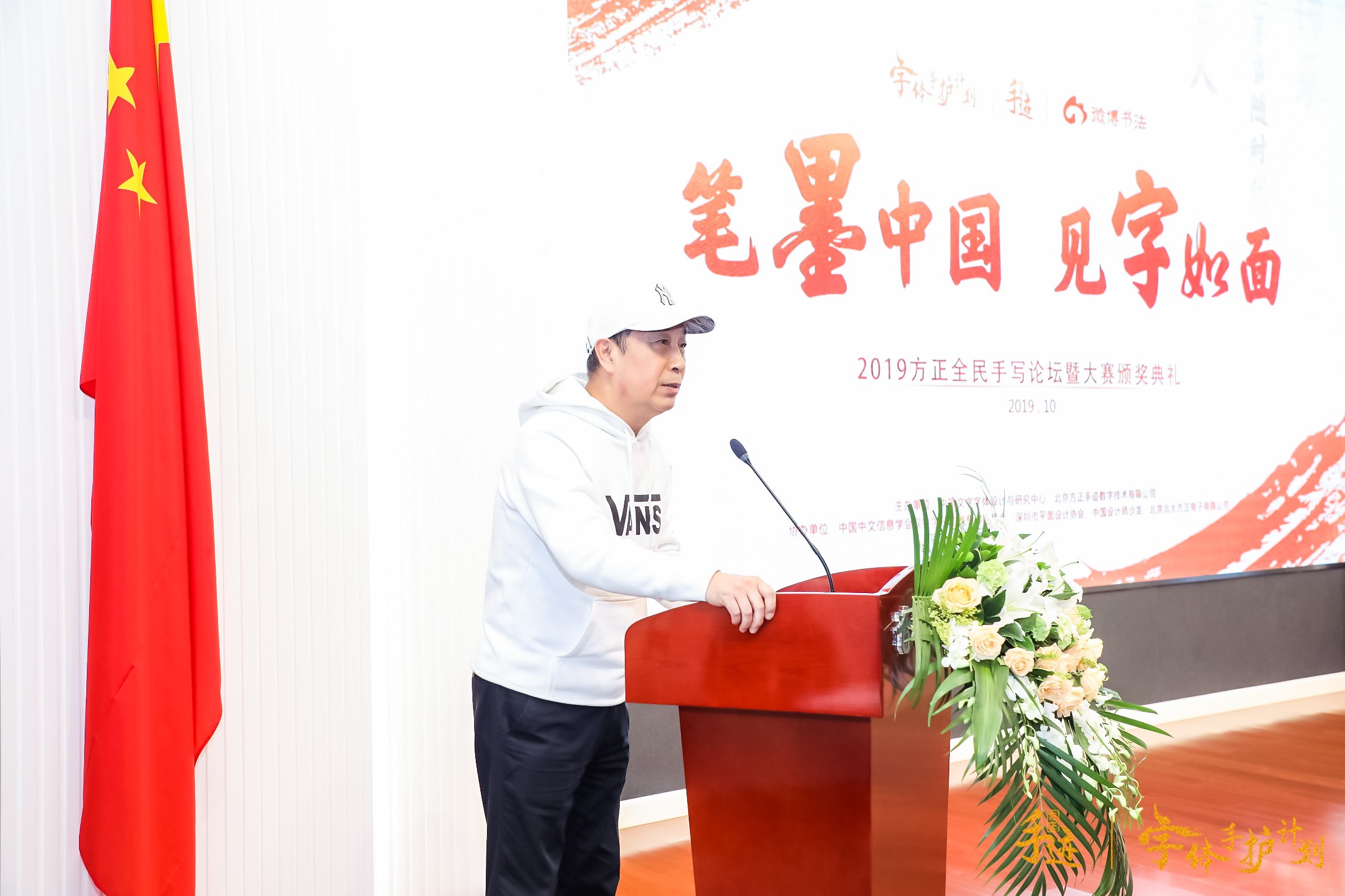 10月27日, “筆墨中國·見字如面”——2019方正全民手寫論壇暨大賽頒獎典禮在首都師範大學舉行。教育部語言文字信息管理司規劃協調處處長王奇、中國書法家協會理事兼學術委員會秘書長葉培貴、中國硬筆書法協會副主席丁謙、方正字庫設計總監仇寅、中國設計師沙龍主席蔣雲濤、首都師範大學團委書記張琪、北京方正手跡數字技術有限公司總經理張建國、本次大賽評委、字體應用領域的企業代表、眾多設計師和字體愛好者,共同見證了第二屆方正全民手寫大賽的獲獎作品揭曉。在頒獎現場,大賽評委、嘉賓就科技時代的書法藝術進行了深入的探討,活動最後,方正手跡聯合微博書法發起新一期字體手護計劃。