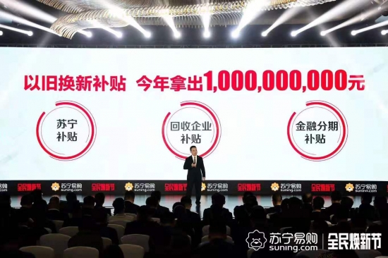 不容忽視的是,在家電市場全面下行壓力下,家電下鄉10年生命週期末端產品迎來更新換代的集中爆發期,蘇寧緊隨國家政策,大力促進“以舊換新”。自今年2月通過“淮安經驗”打造以舊換新典型案例之後,更通過“315全民煥新節”、“618年中大促”兩次拿出10億補貼,引導消費者交售舊家電產品;818期間,蘇寧與全國28個省及直轄市聯合推進消費促進月及以舊換新;國慶期間,蘇寧家電以舊換新再掀熱潮,截至10月7日,全渠道以舊換新金額超過30億。