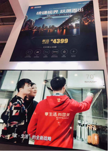 展位上最吸引人眼球的要數兩款超大屏電視。據介紹,MAXREAL86英寸智能語音電視被賦予了傾心顏值+巔峯體驗,不僅是客廳的高端藝術品,更是一個私人巨幕影院,其媲美影院標準的超清真4K畫質、100%全色域、量子點技術等特性,將智能電視體驗刷出了新高度。展區的另一款國美70英寸4K智能語音電視配置夏普原廠屏,畫質逼真,屏中人物彷彿躍屏而出,售價僅為4399元。