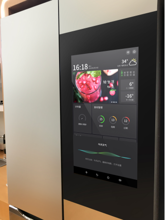 徐燕松還帶着記者體驗了國美智能語音冰箱。據瞭解,這款冰箱採用彩晶玻璃面板,嵌入21.5英寸智能大屏,搭載GOME UI智慧生態系統,內置智能模式調節、食材管理、在線菜譜、計時器、留言板等多個板塊,並提供愛奇藝、QQ音樂等豐富的娛樂應用,外觀炫酷,語音交互使用起來也非常方便,操作更加人性化,音樂影視、信息查詢、百科問答、菜譜瀏覽等,都可以通過語音搞定,無論是老人還是孩子,都可以輕鬆入門無壓力。