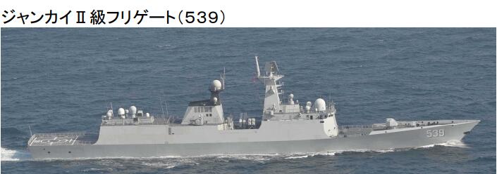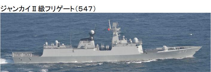 日本防衞省統合幕僚監部28日發佈消息,10月25日晚11時左右,日本海上自衞隊在對馬海峽西南約250公里處海域發現向東北方向航行的2艘中國海軍054A型導彈護衞艦,分別是539艦蕪湖號和547艦臨沂號通過對馬海峽北上進入日本海方向航行。