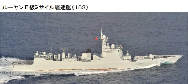 而另一則通報則稱10月27日上午8時左右,日本海上自衞隊發現在久米島南部約140公里海域發現中國海軍052C導彈驅逐艦153艦西安號、054A導彈驅逐艦599艦安陽號,903A型補給艦966號高郵湖艦組成的艦隊向北方向航行穿過宮古海峽進入東海方向航行。而這些軍艦在4月5日時曾通過宮古海峽向東南方向進入太平洋。