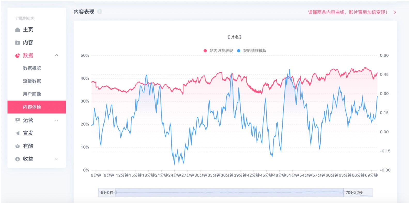 目前,觀影情緒模擬“公測版”已上線,片方通過優酷開放平台後台即可看到已上傳作品的情緒曲線。等該產品正式上線後,片方還可以在影片正式播出前就獲得相關情緒數據,用來指導剪輯及營銷。