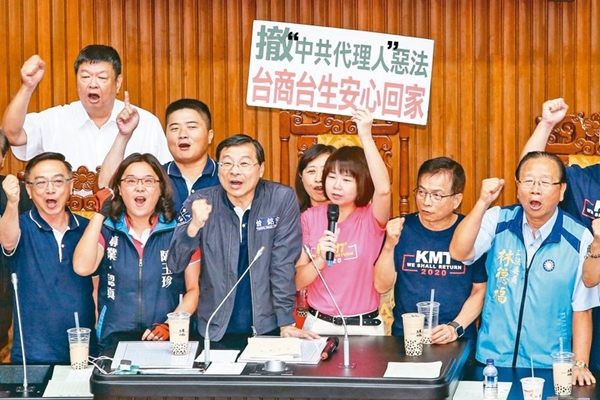 據台灣“聯合新聞網”報道,國民黨團表示,民進黨的“中共代理人法”,違反言論與新聞自由,也將影響在大陸工作的台商與求學台生權益,更違背民進黨建黨精神。若蔡當局執意大開民主倒車,為操作選舉而強行推動修法,國民黨團只能關閉朝野協商大門,作為反制。