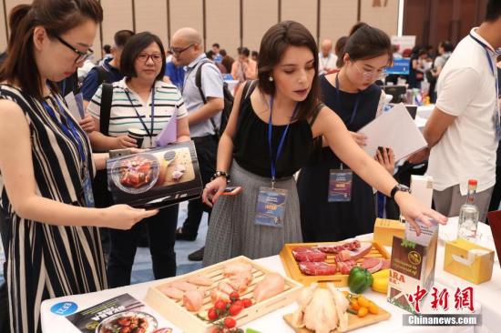 資料圖:7月26日,在第二屆進博會倒計時100天即將來臨之際,面向食品及農產品展區、醫療器械及醫藥保健展區的展前供需對接會在國家會展中心(上海)舉行。中新社記者 張亨偉 攝