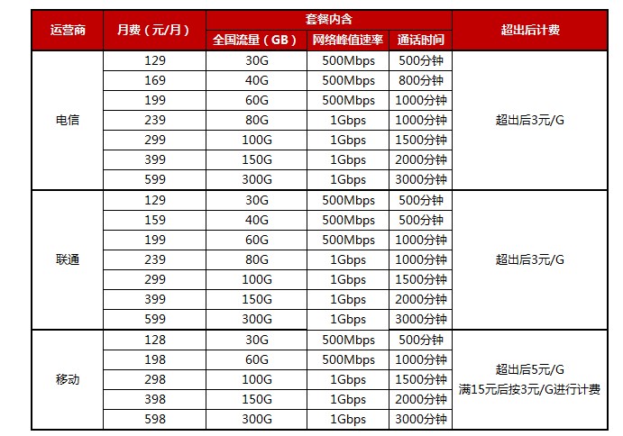從當前已公佈的套餐來看,中國電信、中國聯通、中國移動首批釋放的5G套餐起步價基本一致,128元的門檻也比較親民,在網速和流量的不同的情況下,套餐費用也有不同。