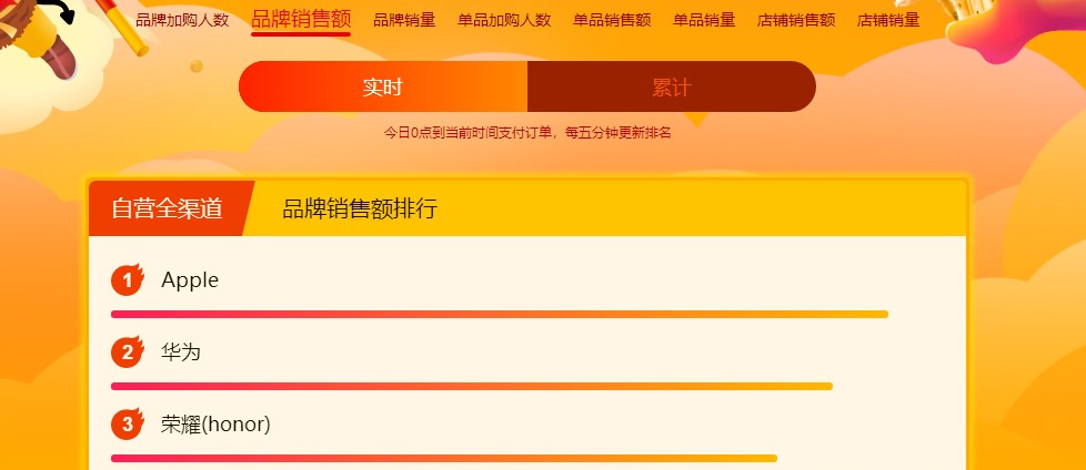 在手機方面,蘋果、華為、榮耀則位居悟空排行榜手機品牌銷售額前三位。