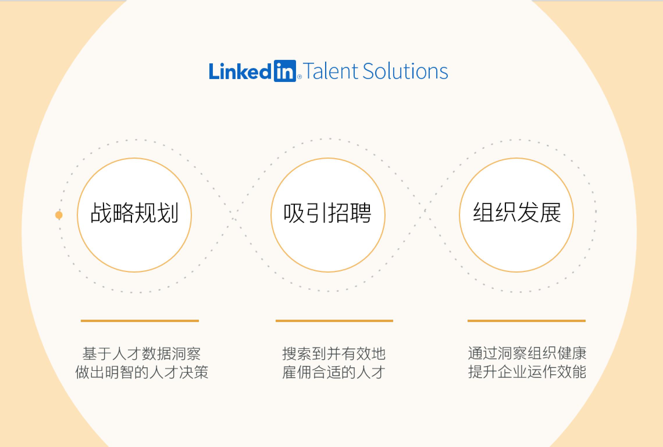 “人才管理數字化變革解決方案”基於領英徵才解決方案全新策略——戰略規劃、吸引招聘、組織發展,針對“企業要找什麼樣的人才”、“人才在哪裏、怎麼招”、“人才怎麼留存和激活”三大問題,開啓人才生命全週期管理。領英致力於協助企業從人才招聘出發,前端整合行業大數據洞察及企業戰略規劃,縱向延展組織績效管理和員工發展,真正實現以人才為根基推動企業變革與發展,助力企業人力資源管理的數字化轉型。