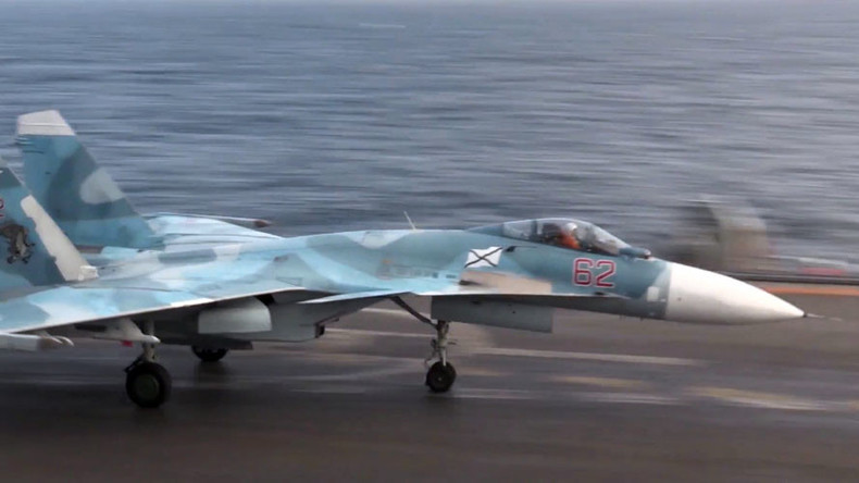俄羅斯海軍飛行員已經能在“庫茲涅佐夫元帥”級航母上嫺熟地降落,不管是在遇到風暴、在夜間還是在惡劣的天氣條件。“月亮”輔助降落系統——安裝在甲板上的鏡頭能幫助飛行員“瞄準定位”。