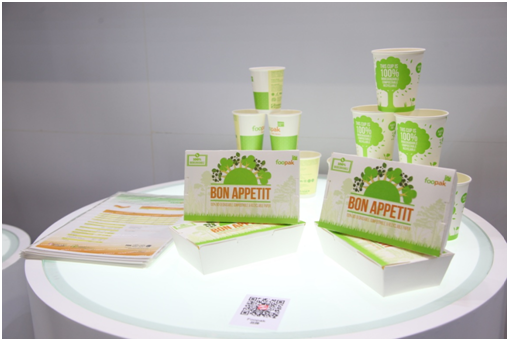 據悉,Foopak Bio Natura可降解食品卡和紙杯紙依然是今年展台的最大亮點。該產品專門為盛放飲料和食品而設計,紙杯內層的水性淋膜採用全球領先的APP專屬的可降解生物質配方,擁有環保無塑料,不含光學增白劑,分解後可用於堆肥,可循環利用,可再製漿,可隔熱,耐高温達220攝氏度等特點。
