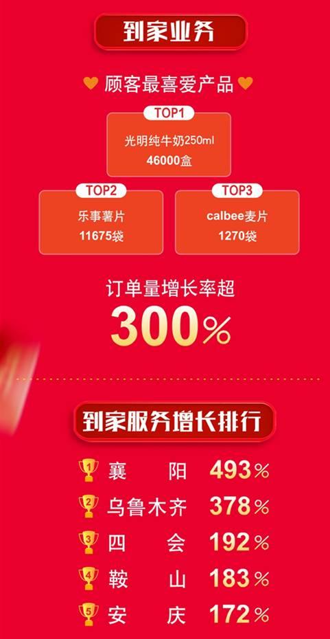開門紅收官,北京依然是到家服務運用最多的城市。但從增量來看,到家服務增長TOP5排行榜上,除了烏魯木齊,其餘四個都是低線城市,渠道下沉效果顯著。在與蘇寧小店、零售雲等蘇寧各業態進一步互聯互通後,家樂福的即時服務配送能力還將得到進一步提升,為全國各級市場的消費者提供便捷實惠的消費、娛樂及生活服務。