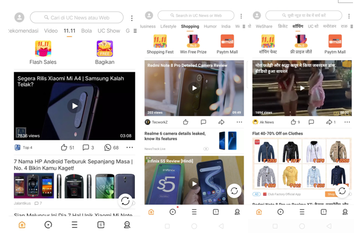 11月5日,阿里旗下UC在印度、印尼、俄羅斯、泰國和越南五國同步啓動雙11線上活動,多種運營玩法為用户提供實惠便利的購物體驗,內容生態實力種草輔助用户享受低價好物。在印尼、泰國和越南聯動Lazada,在印度合作Paytm,在俄羅斯拉通速賣通商家,作為全球第一的第三方手機瀏覽器,UC海外內容生態在為本地用户提供價值服務上更進一步。