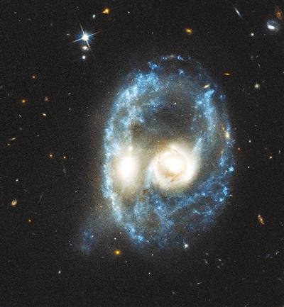 宇宙“鬼臉”:兩個星系的正面碰撞