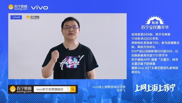 vivo線上銷售領域總經理馮宇飛表示,雙十一除了帶來iQOO neo、iQOO Pro等多款優質手機新品外,更多vivo手機在蘇寧都有驚喜價格,雙十一上網上街上蘇寧,買vivo手機上蘇寧易購,同時還聯動代言人王嘉爾,放送vivo X27王嘉爾限定禮盒。