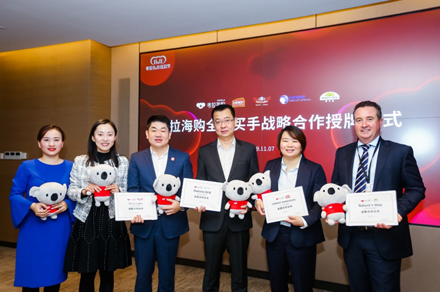 當天簽約的有澳洲大藥房、城野醫生、Nature’s Way 澳萃維、達能ELN 、屈臣氏、雅頓、澳爾濱、薇姿等品牌。天貓雙11在即,考拉和各品牌代表交換了戰袍。