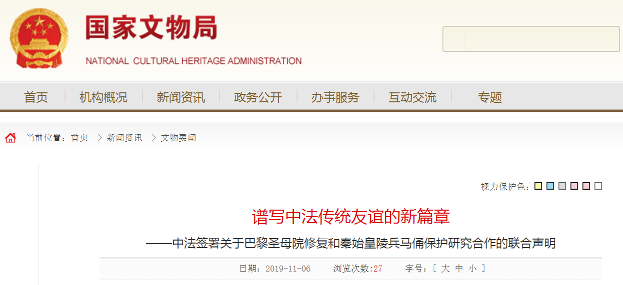 據瞭解,2019年4月,法國巴黎聖母院發生火災。此後,中法文化遺產主管部門間多次函件來往,討論合作設想,最終確定選取巴黎聖母院和秦始皇陵兵馬俑兩處世界文化遺產分別開展修復和保護研究合作。