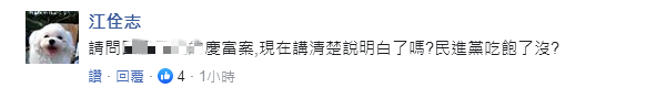 對於蘇貞昌這番言論,台灣網友坐不住了,有網友翻起舊案稱:請問“慶富案”現在講清楚明白了麼?民進黨吃飽了沒?