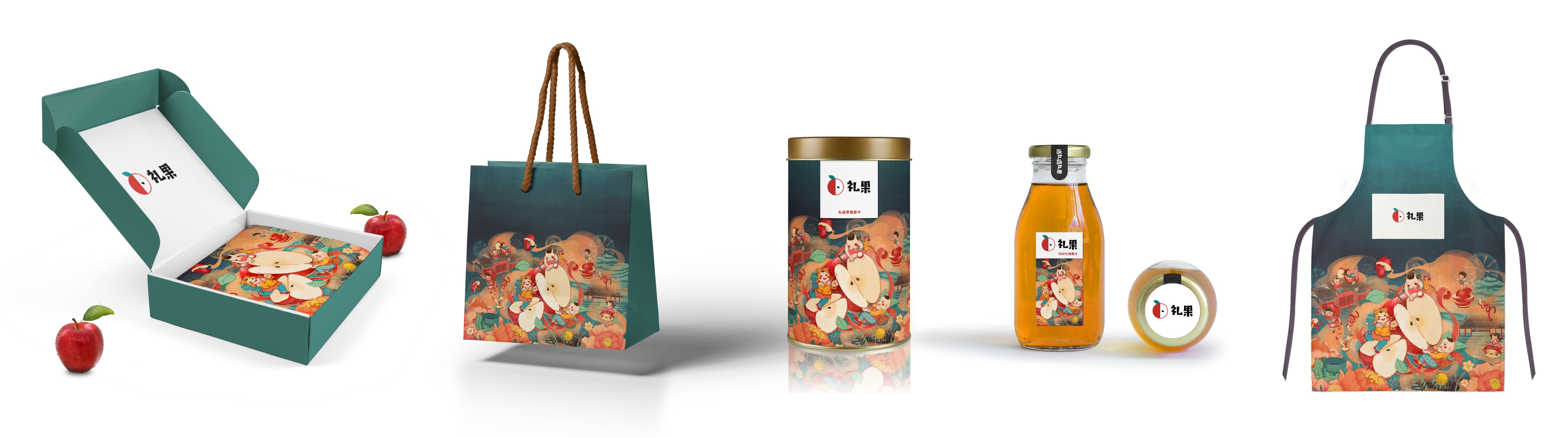 今年,阿里巴巴組織了一場為40多個貧困縣農產品設計品牌形象的比賽。一等獎作品“禮果”,設計師吳硯萌不僅設計了蘋果禮盒,還設計了果汁、果乾等蘋果周邊產品的品牌宣傳摺頁、帆布袋、明信片等,能用於從果園採摘、新鮮配送到市場包裝、品牌周邊售賣的蘋果產業全鏈路。