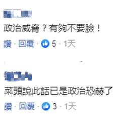 也有網友質疑,“政治威脅?”、“説此話已是政治恐嚇了”。