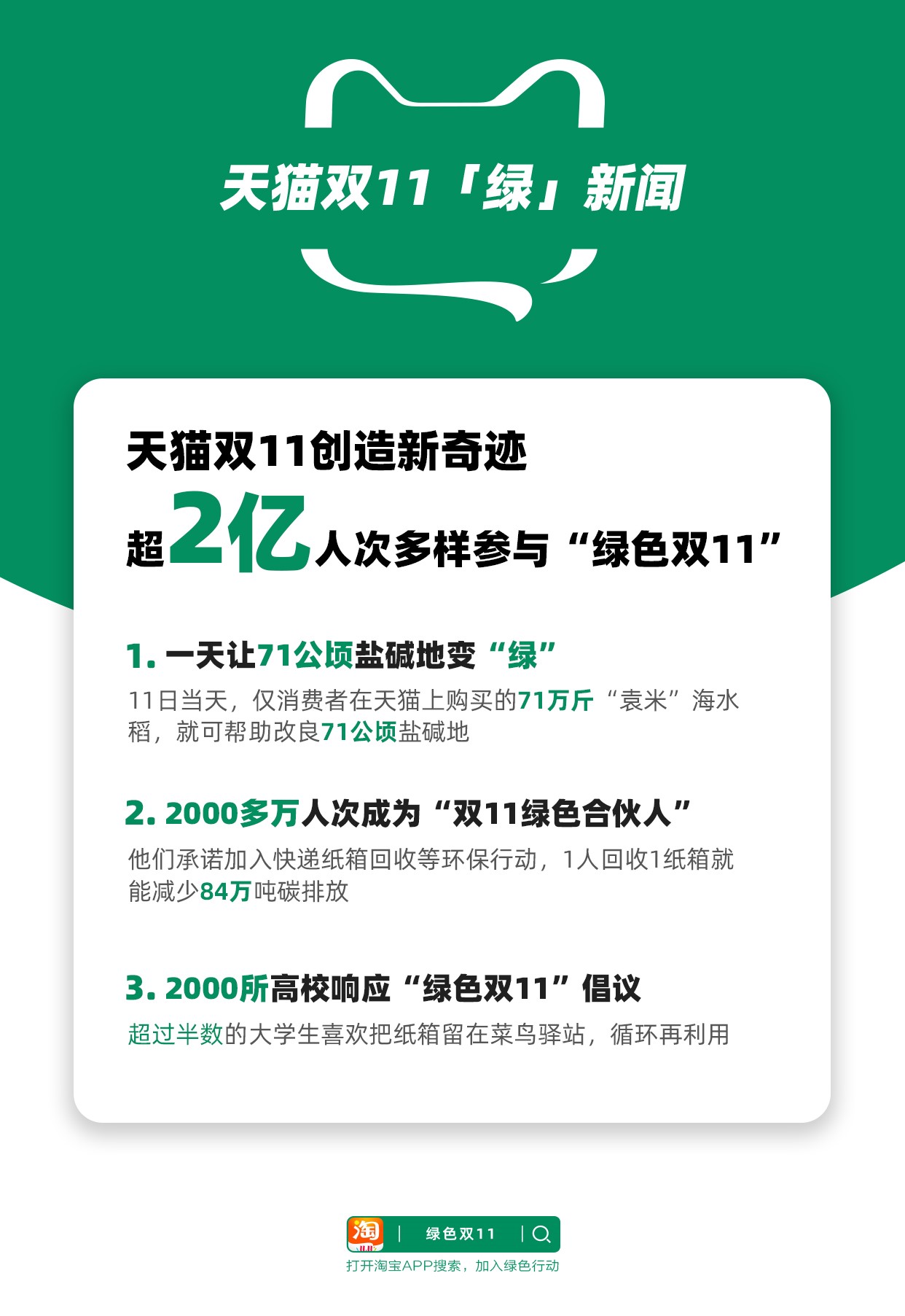 天貓雙11創造新奇蹟:超2億人次多樣參與“綠色雙11”