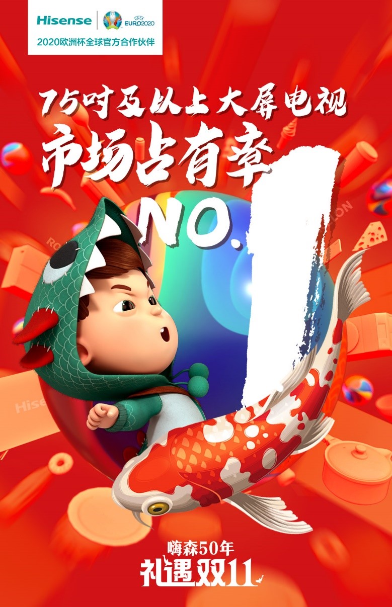 剛剛過去的雙十一,海信在激烈的競爭中交出了一份亮眼的成績單:海信電視全網銷售額破億僅用11秒,75英寸及以上大屏電視銷量同比增長259%,市場佔有率排名第一;洗烘滾筒洗衣機銷量同比增長211%。