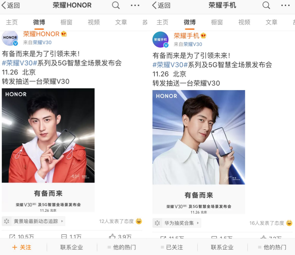 榮耀首款5G手機榮耀V30系列將於11月26日發佈