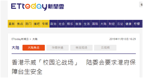 另據台灣“東森新聞網”等媒體報道,台陸委會13日下午還緊急發佈消息稱稱,已強烈要求香港特區政府以及香港各校校方,確保在港就學台灣學生的安全。