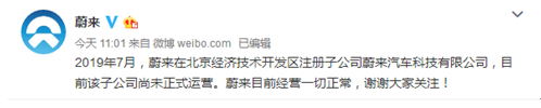 蔚來回應子公司被列入經營異常名錄:該子公司尚未正式運營