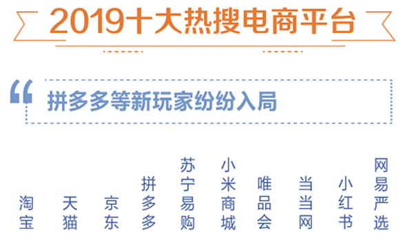 數據顯示,2019“雙十一”最受關注的十大電商平台,分別是淘寶、京東、天貓、拼多多、蘇寧易購、小米商城、唯品會、噹噹網、小紅書、網易嚴選。