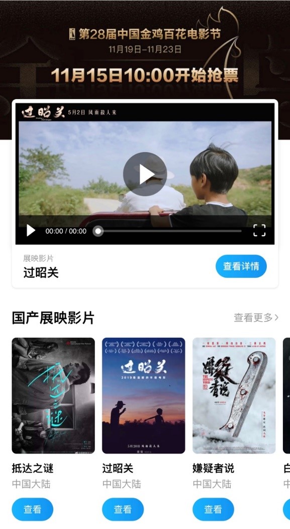 除了售票服務外,阿里影業旗下的影院數智化經營管理開放平台鳳凰雲智,也為本次展映提供了技術支持。此外,淘票票還與優酷一起,上線了歷屆金雞百花獲獎佳片的專題頁,觀眾只需點擊專題中的在線觀看按鈕,即可在優酷足不出户享受優秀獲獎佳作。淘票票×優酷再次展現出全鏈路用户觀影平台的優勢。