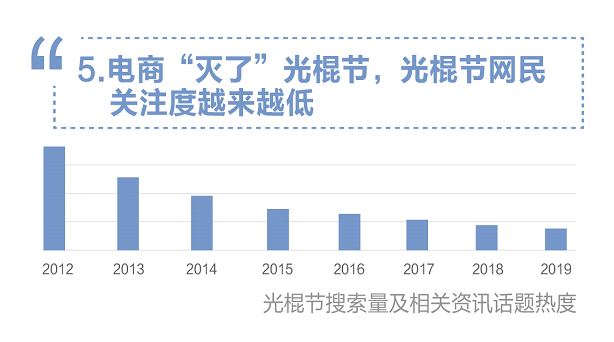 通過《報告》可以發現,人們對 “購物狂歡”的關注度高漲,而本身“光棍節”關注度連年下降。在過去11年,“雙十一”的用户關注度持續攀升,但增速趨於平穩,增幅由2012年514%逐步降為今年的18%。“購物津貼”、“店鋪優惠”、“湊單滿減”、“預售定金”等登陸今年“雙十一”購物相關搜索熱詞。
