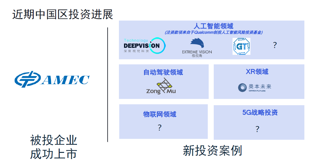 高通創投對於中國市場的重視是有目共睹的。高通創投專門設立了1.5億美元的中國風險投資基金,用於支持中國初創企業的發展。據悉,在過去9年中,高通創投在中國已投資60多家企業,投資並完成退出13家獨角獸企業。其中包括小米、摩拜和觸寶等成功上市或被併購。近期,高通投資的半導體設備企業中微半導體也成功登陸科創板。