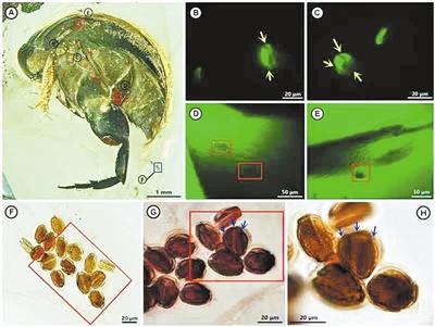 花蚤和花粉標本 中科院南京古生物所供圖