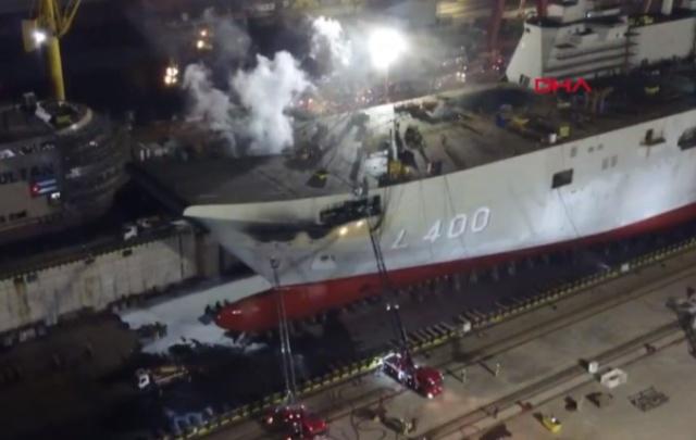 “阿納多盧”號的艦體已經完工,目前已經下水進行舾裝工作,但該艦在建造過程中還出現了一段小插曲。2019年4月30日,當時還在船廠內進行建造的“阿納多盧”號發生火災,船頭處冒出濃煙,隨後大火被撲滅,好在無人傷亡。