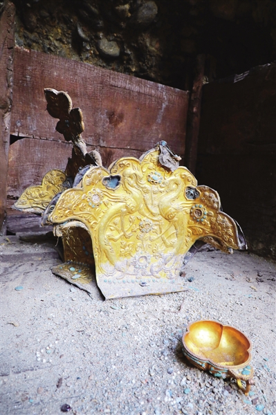 更不一般的是,這個墓的防盜設計。除了用柏木封頂、墓頂上堆積大量石塊之外,墓葬內還設置密封的暗格。“在中國乃至全世界的考古史上,都沒有發現過類似的先例。”考古領隊仝濤説。暗格內發現了一隻保存完好的鎏金王冠,既有冕旒,又刻有雙龍,這都顯示墓主人很可能與唐吐蕃時期當地的王室有密切關係,曾經擁有極高的統治地位,推測為唐吐蕃王室成員。由此也可以推知唐吐蕃時期,在柴達木盆地北緣地區可能設置有高級別的行政和軍事建制。“迄今為止中國境內歷代王冠極少出土,均被盜擾嚴重,或保存極差難以復原。墓葬內暗格的獨特設置,可見造墓者用心之良苦。”仝濤説。