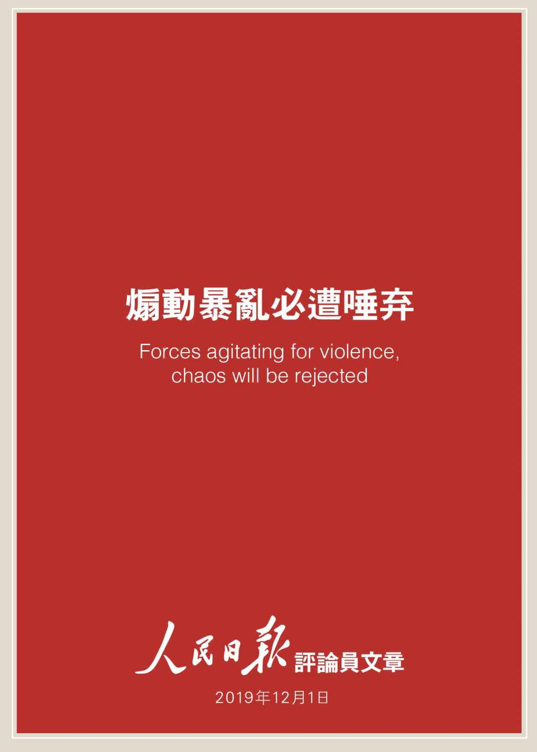 人民日報評論員:煽動暴亂必遭唾棄 踐踏人權不會得逞