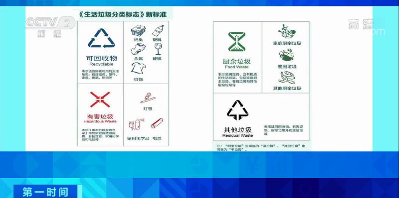 從12月1日起,新版《生活垃圾分類標誌》國家標準開始正式實施。新的國家標準將生活垃圾分為可回收物、有害垃圾、廚餘垃圾和其他垃圾四大類,主要應用在垃圾桶、包裝物等產品上。