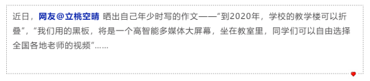 正如李彥宏説:“AI雖然不能產生萬物,但是可以喚醒萬物。”2020年雖然沒有可摺疊的教學樓,但我們看到擁有高智能多媒體大屏幕正在讓全國各地的學生,可以在互聯網技術的“照拂”下,享受科技帶來的“知識平等”,讓更多孩子走出“教育資源發展不均衡、地域差異性大”的困局,成為人工智能時代的參與者和受益者。