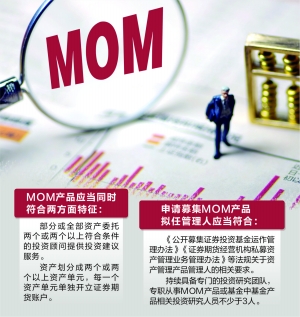 目前,《指引》及中國結算關於MOM產品賬户開立規則均已出台,MOM產品推出無法規障礙。記者獲悉,多家基金管理人已做好公募MOM產品的準備工作,各大代銷渠道也躍躍欲試,預計首批公募MOM產品將很快面世。