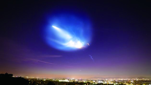 曹夢介紹説,火箭發射呈現出“暮光效應”的最關鍵因素是發射時間。這需要火箭發射時間在日出前30分鐘或日落後30分鐘內。與“山腳下陷入暮色,但山峯依然有陽光照射”的常見情況一樣,在這些特殊時間段內,儘管地面觀察者覺得天色昏暗,但高空中還有光照。當火箭在夜空中上升時,漸漸離開地球陰影區,火箭尾跡此時會被高空的陽光照亮。對於地面的觀察者而言,雖然天色已暗,但被照亮的火箭尾跡反而格外顯眼。隨着火箭越飛越高,大氣壓力逐漸降低,尾跡擴散越來越寬,並在高空氣流的作用下變成特殊形狀。據報道,2018年10月美國“獵鷹9”火箭發射時產生的瑰麗尾跡,一度讓加州多地驚呼“外星人來了”。▲