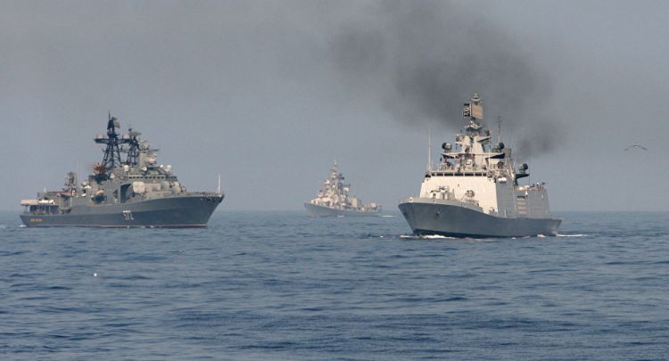 俄印艦艇舉行海上聯合軍演組成編隊協同作戰